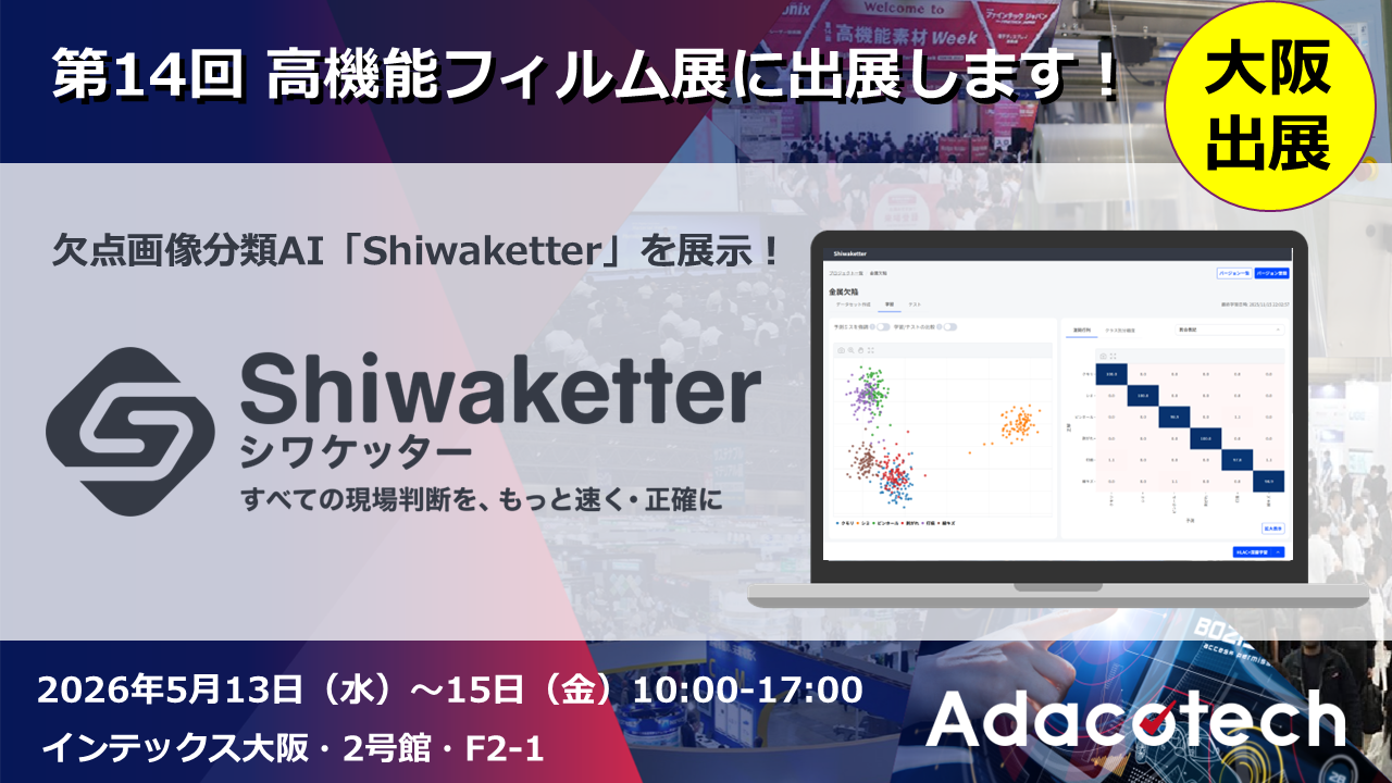 2026年5月13日(水)~15日(金)、インテックス大阪で開催される 「第14回 高機能フィルム展 - FILMTECH JAPAN -」 にアダコテックが出展いたします。